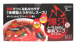 爆汗とうがらし春雨スープ 7食入り 【アスティ: 健康食品 ダイエットフード】【p2】【ポイント2倍】【楽ギフ_包装】 価格: 787円 レビュー評価: 0.0 レビュー数:0 ** 使用方法 **●春雨を袋から取り出し、スープとともに器に入れ、150?180ccのお湯を注ぎ、約3分後お召し上がりください。●1日3食のうち1食を本品に置き換えてください。** 使用上の注意 **●体質や体調によりまれに合わないときがあります。その場合はご使用を中止してください。●薬を服用している方、通院中の方は担当専門医にご相談の上、ご使用ください。●本品は、一部自然素材を加工したものが配合されているため、まれに味、色にばらつきがありますが、品質には問題ありません。●開封後はお早めにお召し上がりください。●辛味成分のカプサイシンは刺激が強いため、小さなお子様や辛味が苦手な方、胃の弱い方 Supported by 楽天ウェブサービス |